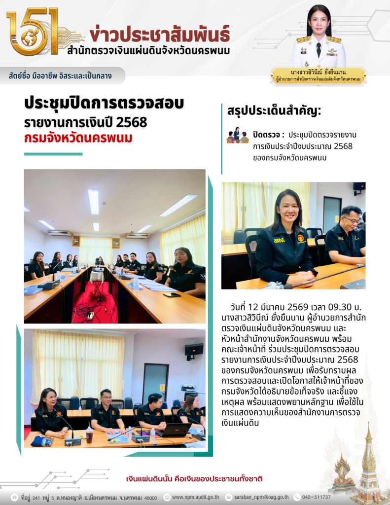 ผู้อำนวยการสำนักตรวจเงินแผ่นดินจังหวัดนครพนม ร่วมประชุมปิดการตรวจสอบรายงานการเงินปี 2568 ของกรมจังหวัดนครพนมกิจกรรมตรวจสอบ, ภาพกิจกรรมมีนาคม 12, 2026 Post Views: 6