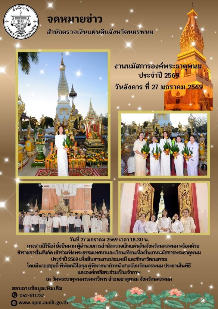 สำนักตรวจเงินแผนดินจังหวัดนครพนม ร่วมฟังธรรมเทศนาและเวียนเทียน เนื่องในงานนมัสการพระธาตุพนม ประจำปี 2569Uncategorized, กิจกรรมอื่น ๆ, ภาพกิจกรรมมกราคม 28, 2026มกราคม 28, 2026 Post Views: 39