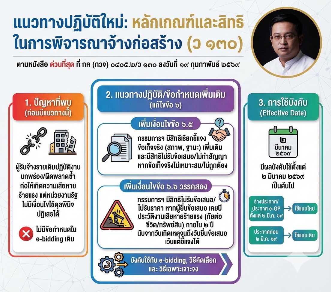 แนวทางปฏิบัติใหม่ : หลักเกณฑ์และสิทธิในการพิจารณาจ้างก่อสร้าง (ว 130) กุมภาพันธ์ 21, 2026กุมภาพันธ์ 21, 2026
